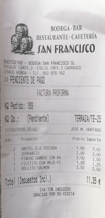 But the best sports bar in Ronda was too crowded for my taste, so I decamped to Bodega SF.