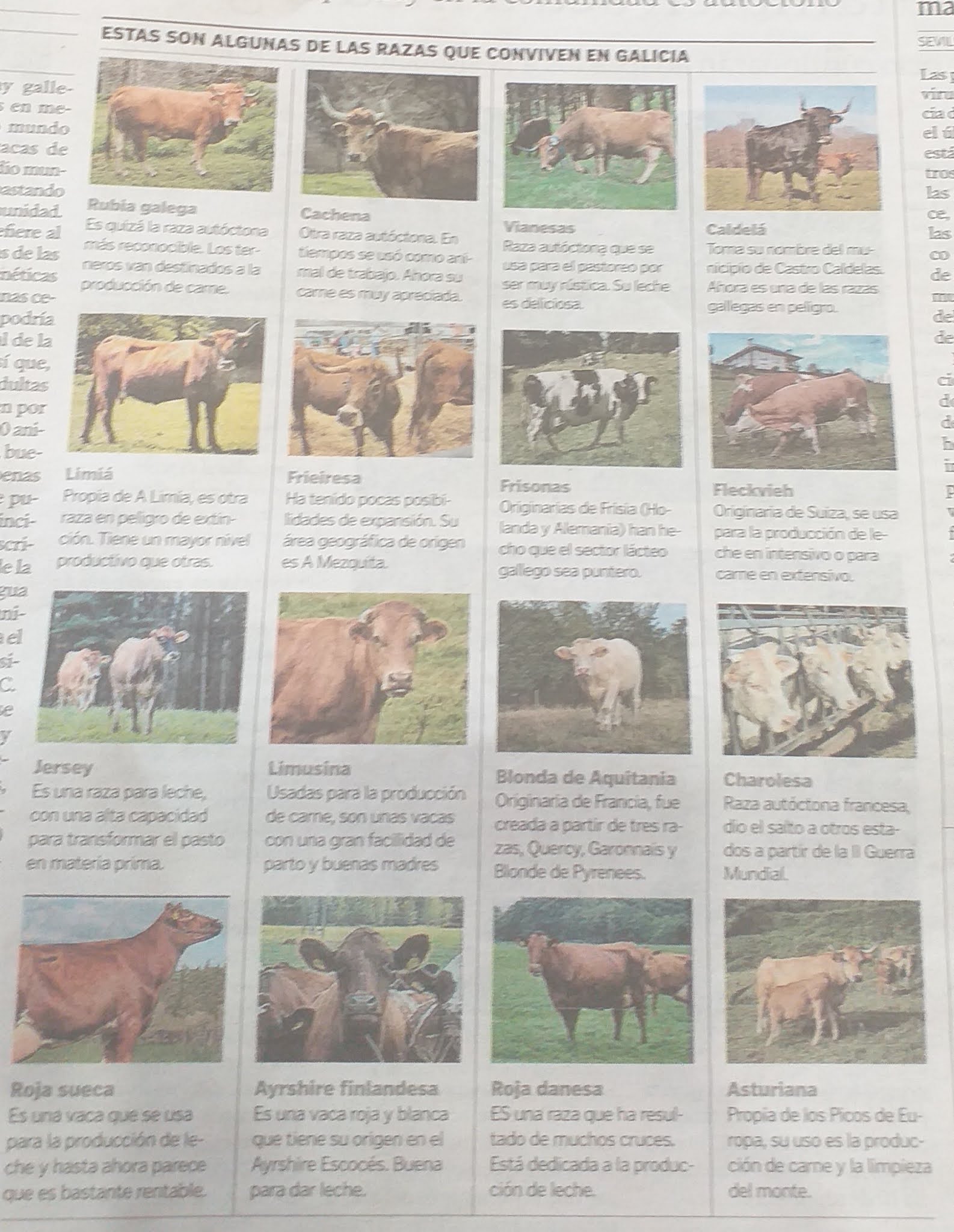 I didn't know there were this many breeds of cow in the entire world so I was surprised to read there were at least 16 in Galicia alone:-