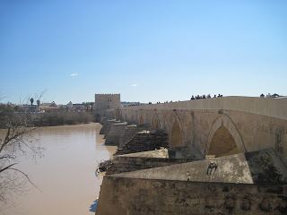 Cordoba was lovely, although the highways into the city made you realise that this is not just a little historical town but a major city, living and breathing. We managed to park and walked to the old quarter. How pretty is this, lovely cobbled streets, old buildings,leaning into each other covered in the early signs of the up and coming patio festival, which must be an amazing sight when in full bloom. Orange trees in full fruit, ripe for picking except don't they are very bitter and husband found out. The Cathedral was just beautiful and we spent a long time in here, truly amazing. Lunch was had in a little restaurant up one of the side streets, We shared a salad to start and then Spanish Omelet and Calamaris it was all very yummy. The afternoon was a gentle stroll looking at what else was on offer, the amazing Roman bridge for one.