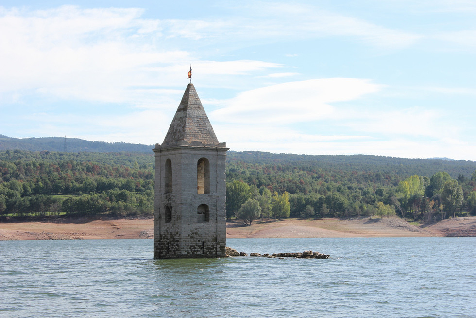 As predicted, the creation of the reservoir flooded San Romà de Sau and completely submerged the buildings. However, when water levels in the area drop, the ghost village eerily emerges from the water, highlighted by the three-story church of the town.